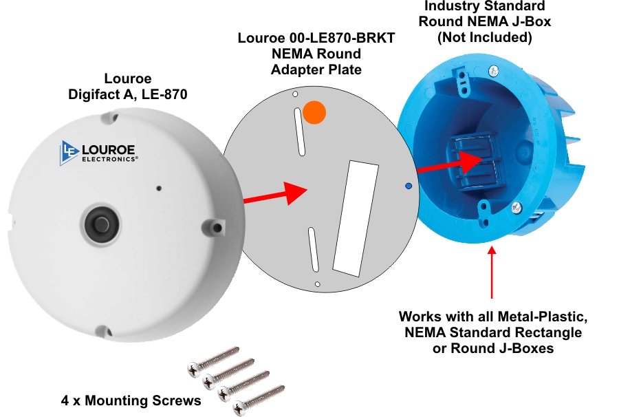 - Nema Electrical Box Adapter Plate with hardware. Provides direct mounting to single gang rectangle and single gang round recessed electrical boxes, (Included)