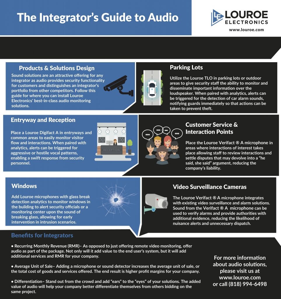 Audio monitoring solutions and sound are an attractive offering for any integrator as audio provides security functionality for customers and distinguishes an integrator’s portfolio from other competitors. Follow this guide for where you can install Louroe Electronics’ best-in-class audio monitoring solutions.